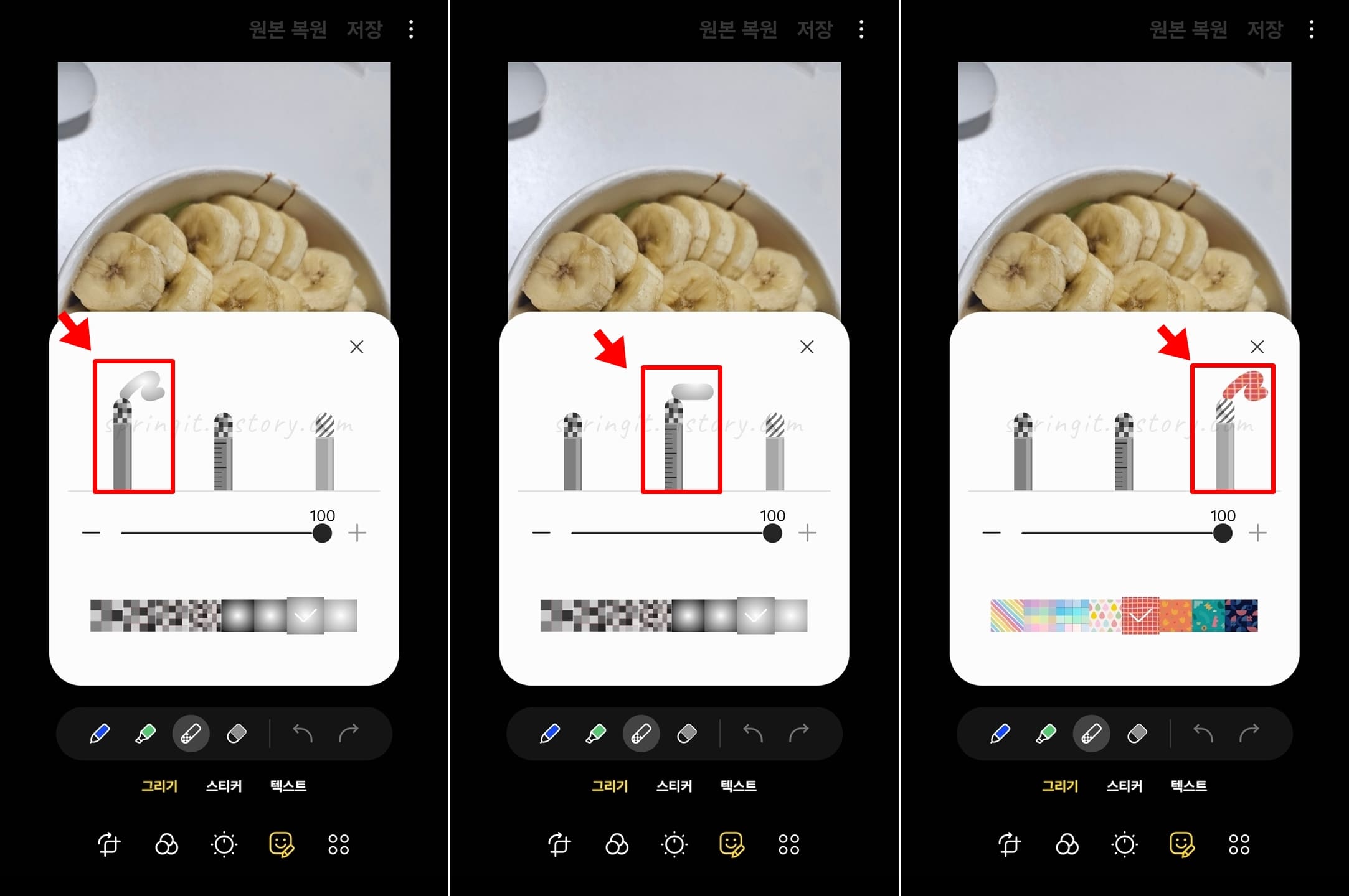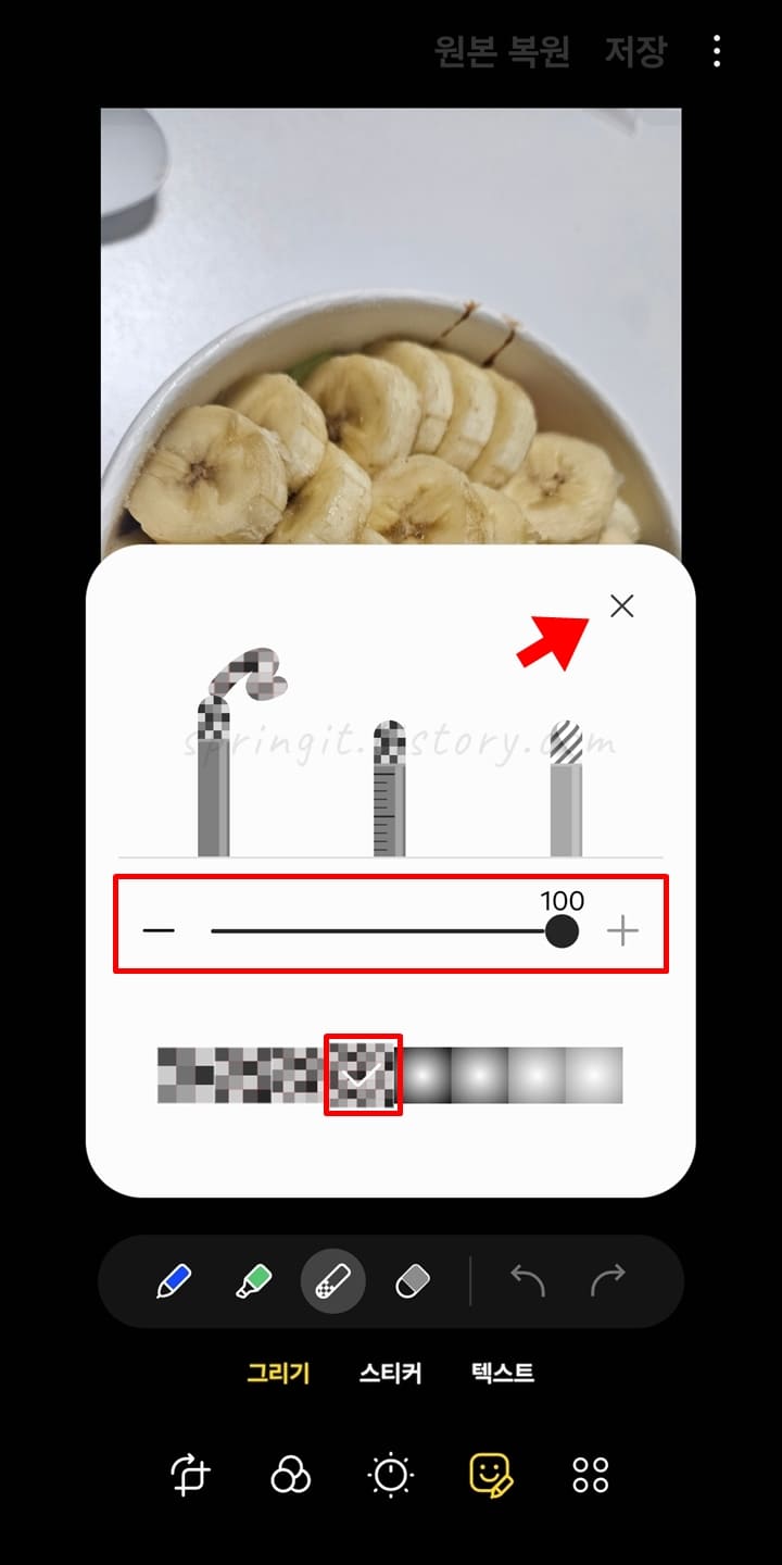 세번째 모자이크 펜은 특정 패턴의 모양으로 모자이크 처리를 할 수 있습니다.