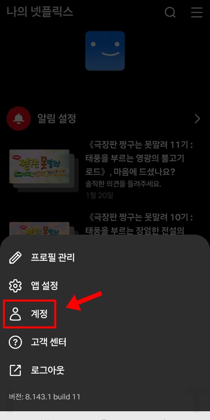 1. 모바일에서 넷플릭스 앱을 실행합니다.
