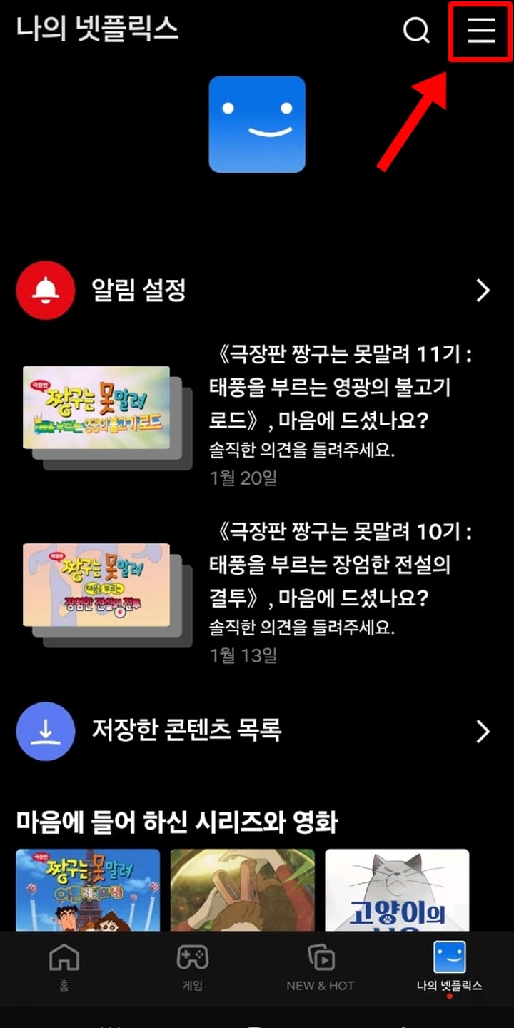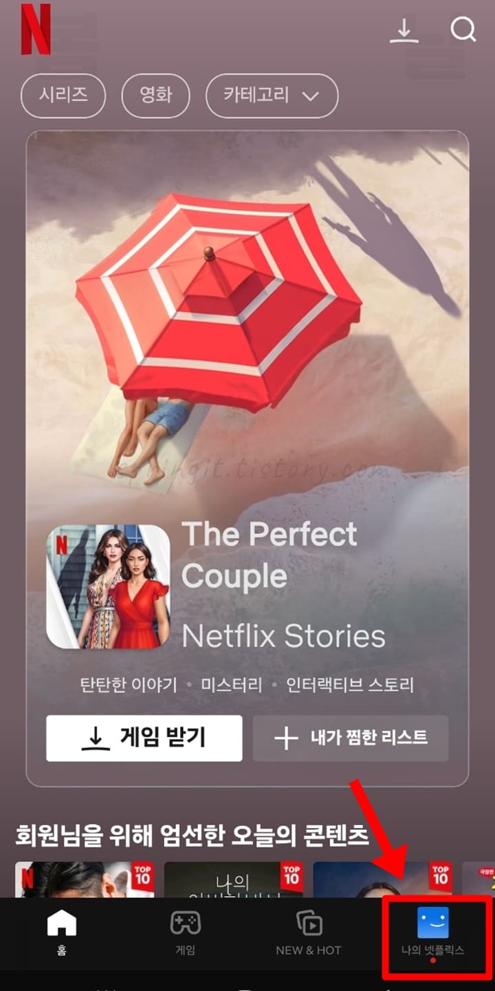 2. 하단 메뉴에서 나의 넷플릭스를 클릭합니다.