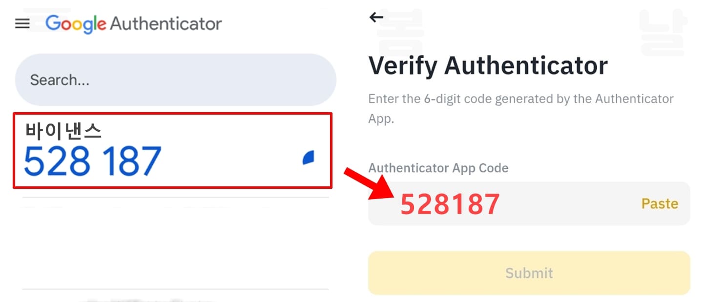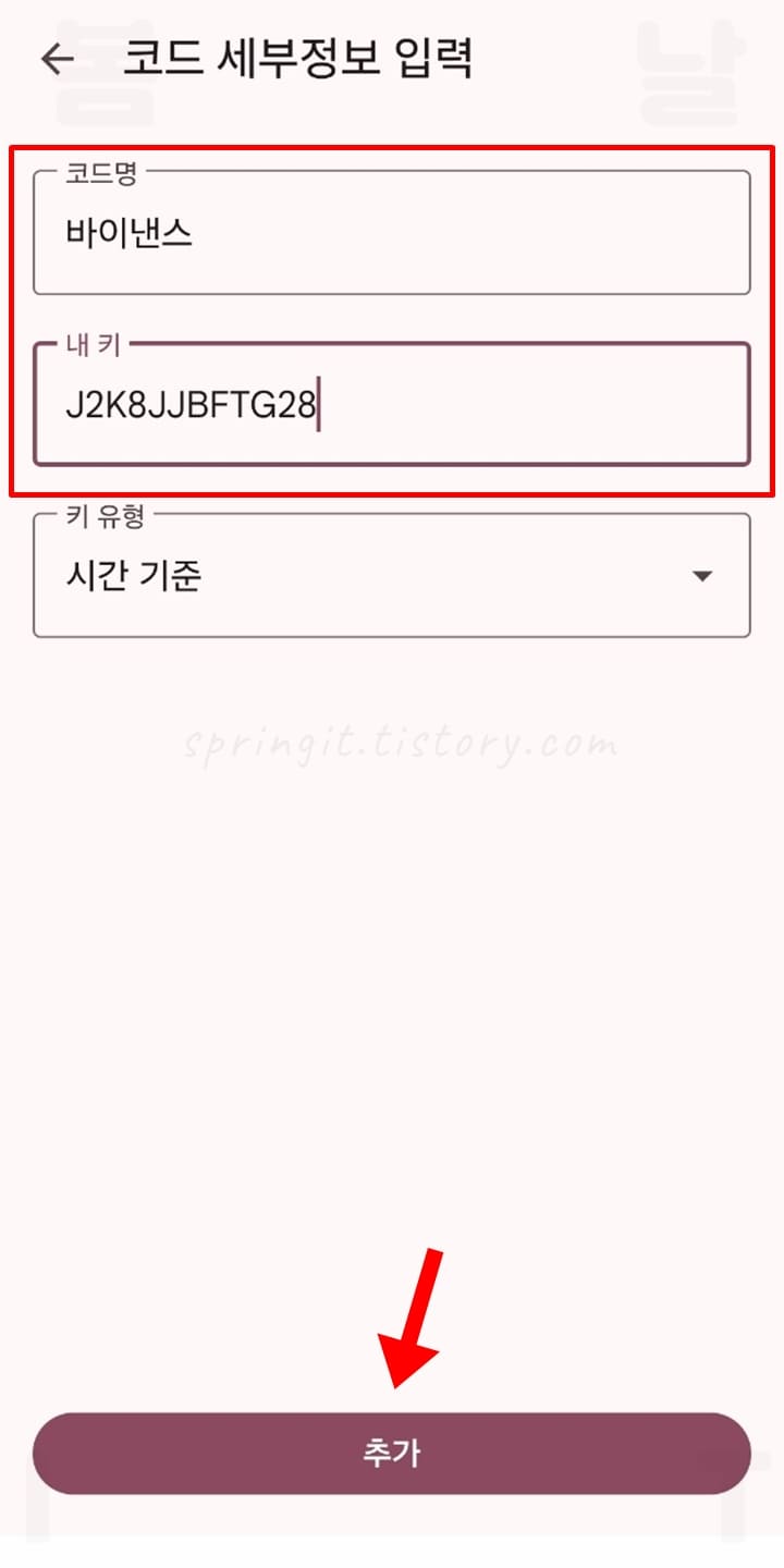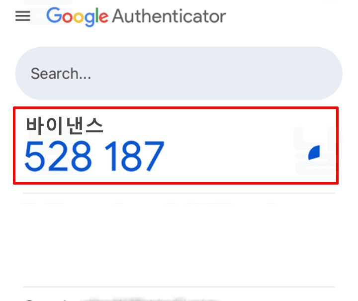 16. 구글 OTP 앱 홈 화면에서 추가된 바이낸스 OTP 정보를 확인합니다.