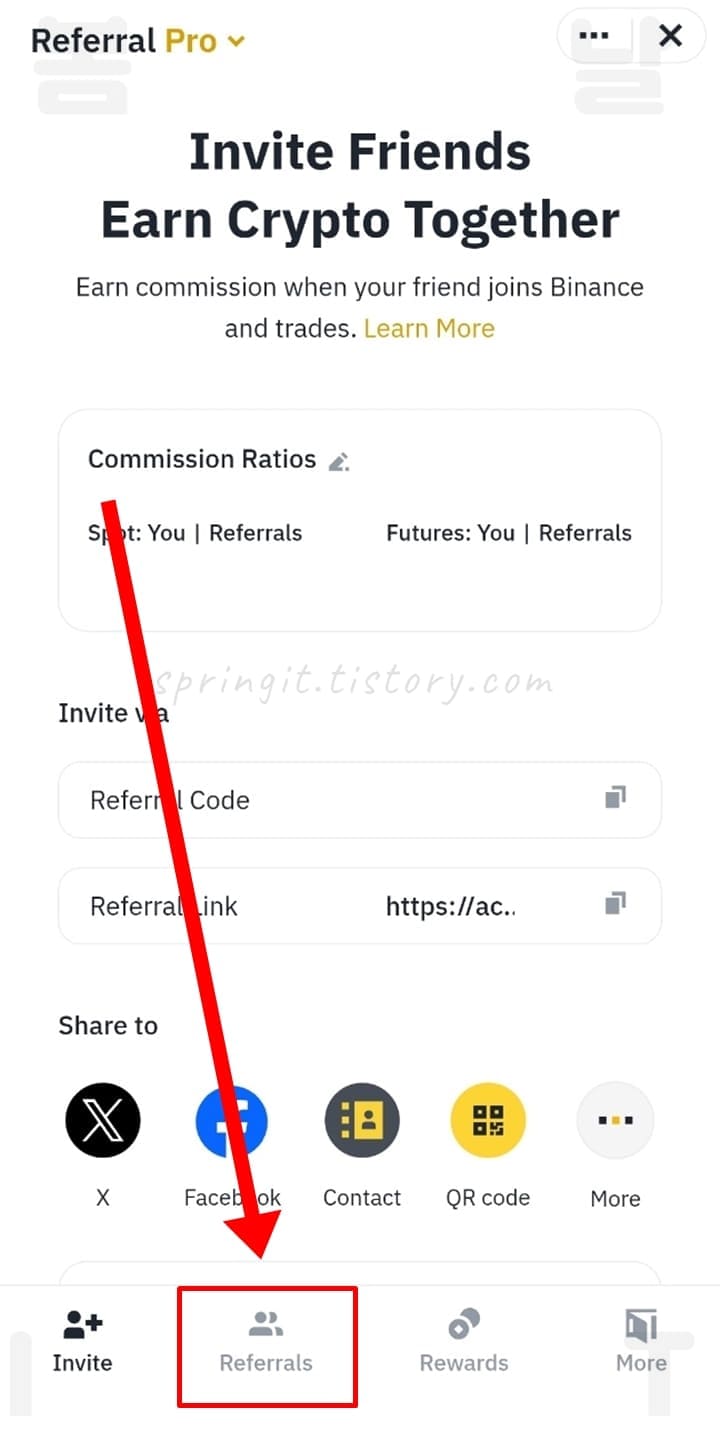 6. 하단 메뉴에서 Referrals를 누릅니다.