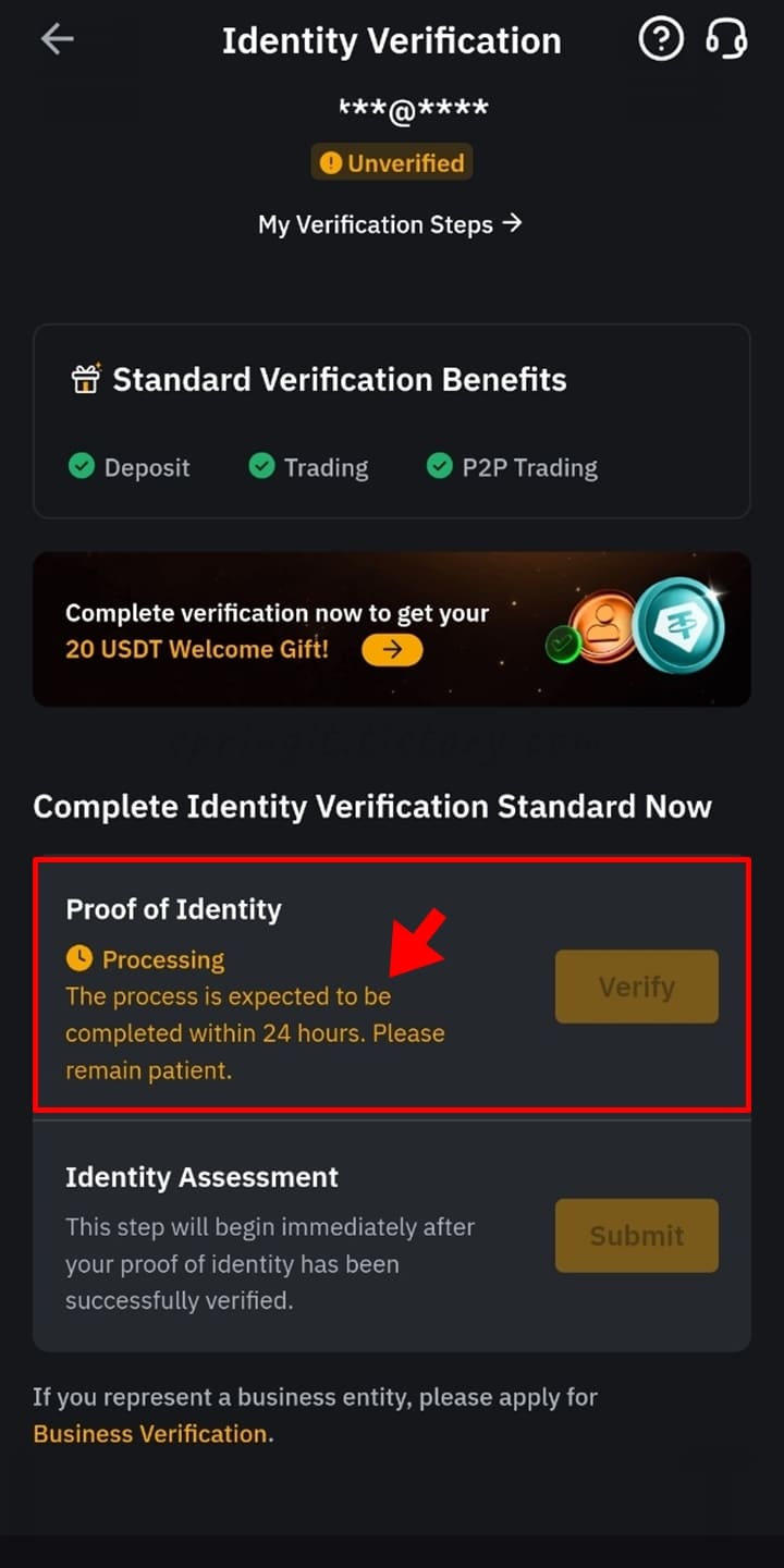 13. Proof of Identity 우측의 Verify 버튼을 누릅니다.