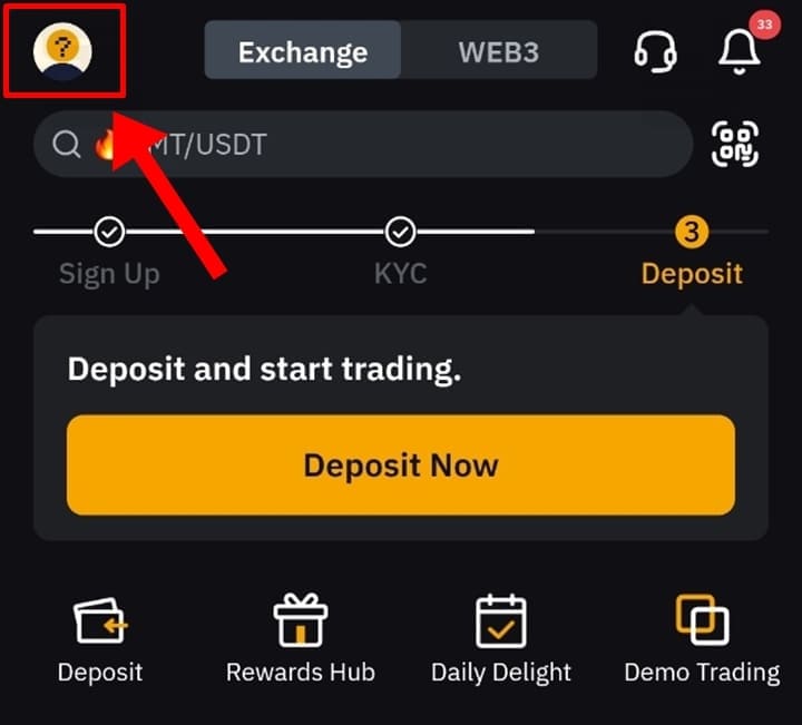 2. 바이비트 어플에서 기존 KYC 인증된 계정으로 로그인합니다.