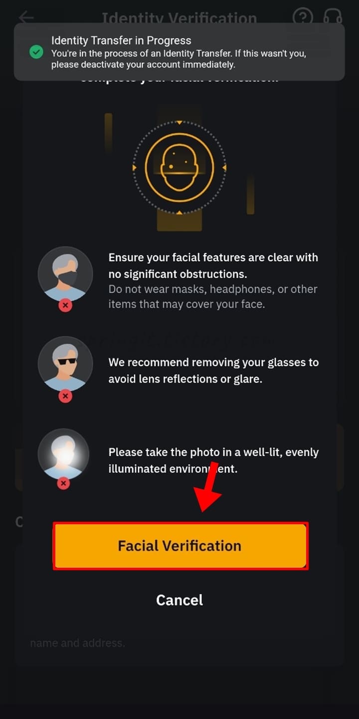 6. Facial Verification 버튼을 클릭합니다.