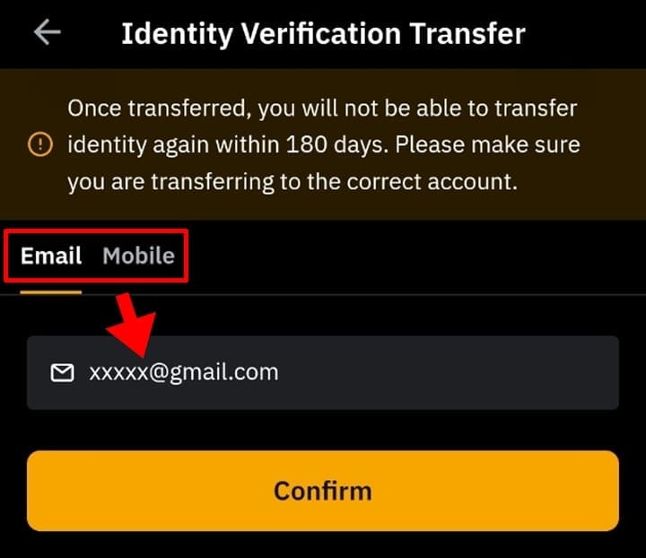 5. Identity Transfer를 누릅니다.