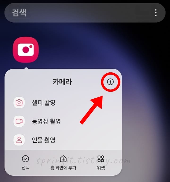 1. 갤럭시 카메라 앱을 길게 누릅니다.