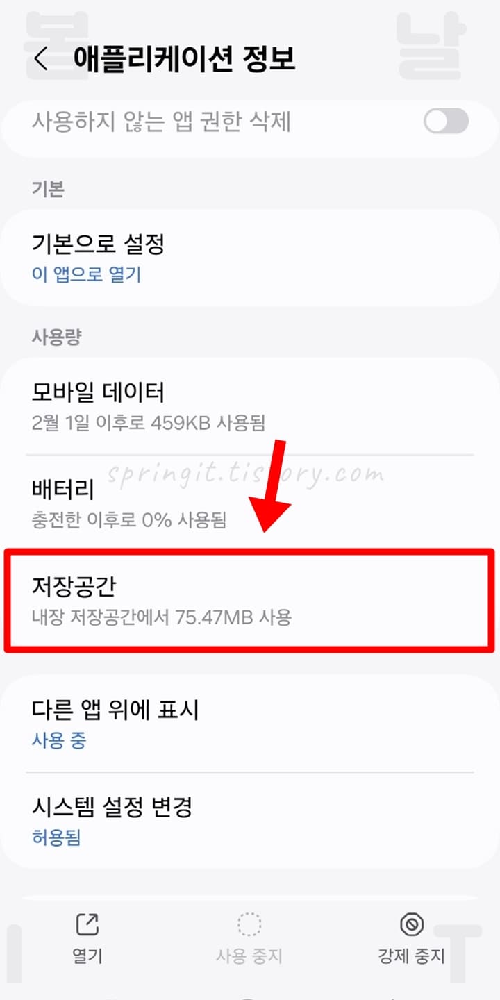3. 저장 공간을 누릅니다.
