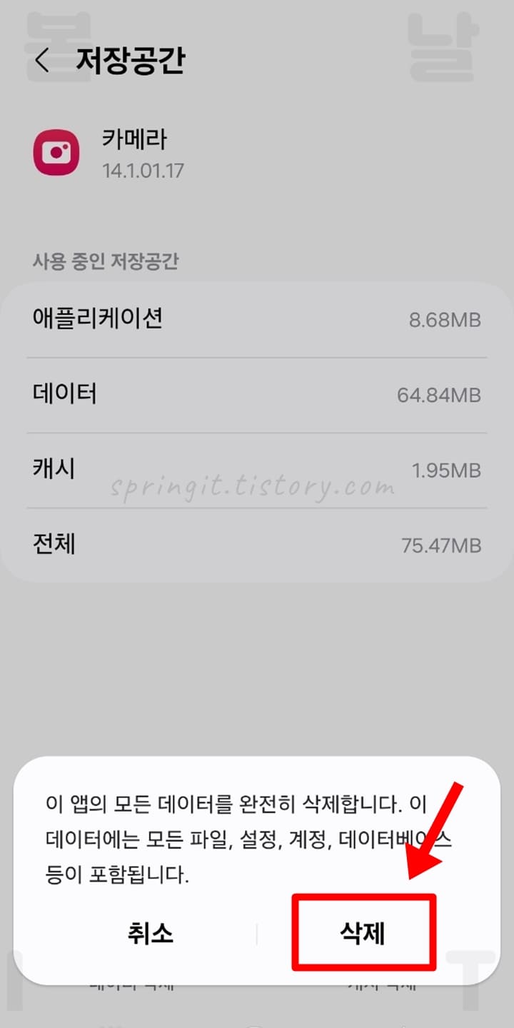 3. 갤럭시 카메라 데이터 및 캐시 초기화 방법