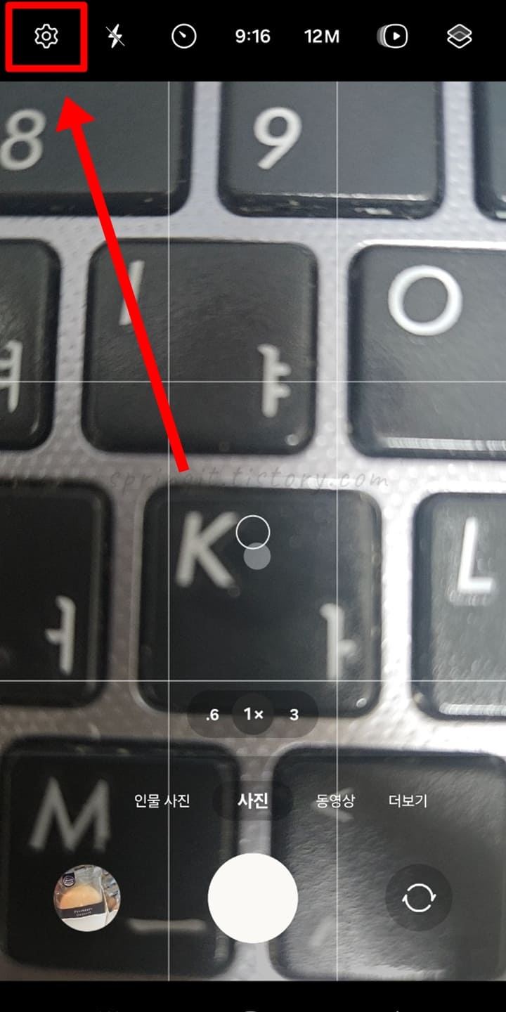 1. 갤럭시 카메라 앱 > 톱니바퀴 버튼을 클릭합니다.