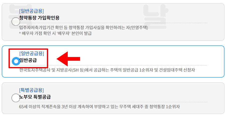3. 일반공급을 선택 후 다음을 누릅니다.