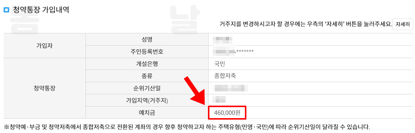5.나의 주택청약 통장 금액을 확인할 수 있습니다.