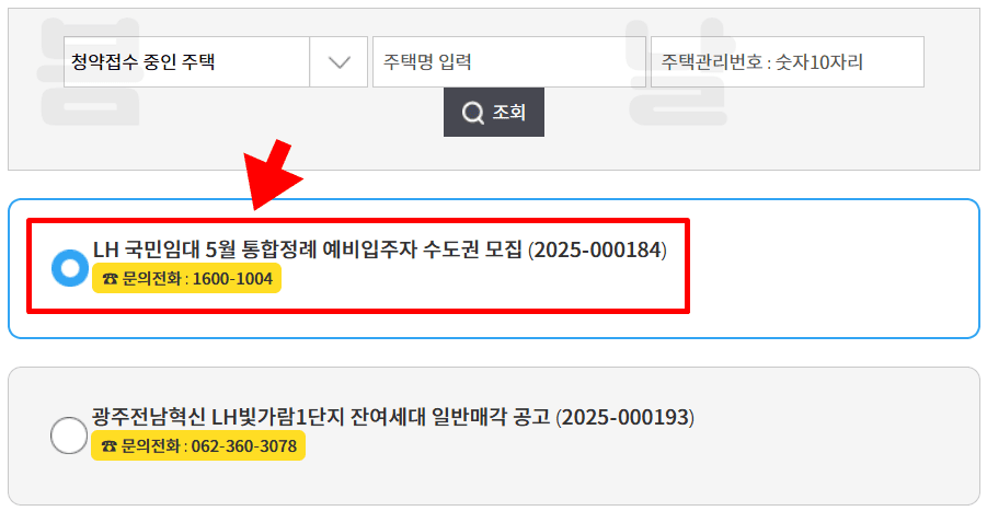 5. 청약을 신청한 입주자 모집공고를 선택합니다.