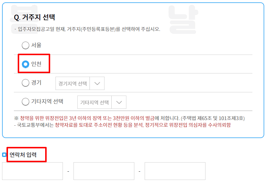 6. 거주지 및 연락처를 입력합니다.