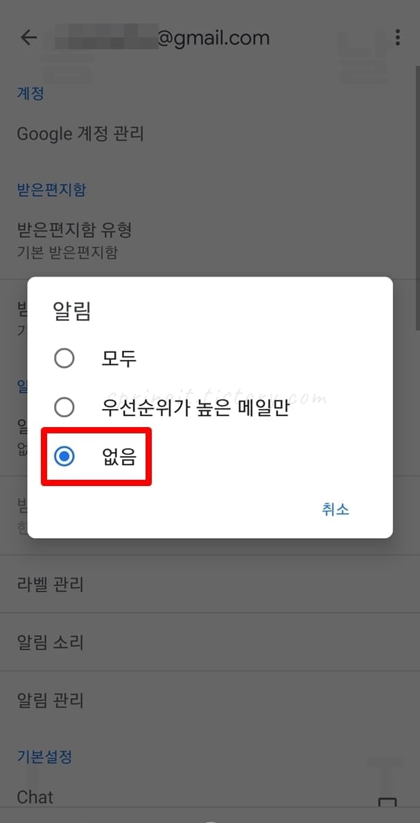 스마트폰에서 구글 메일 알림 끄기