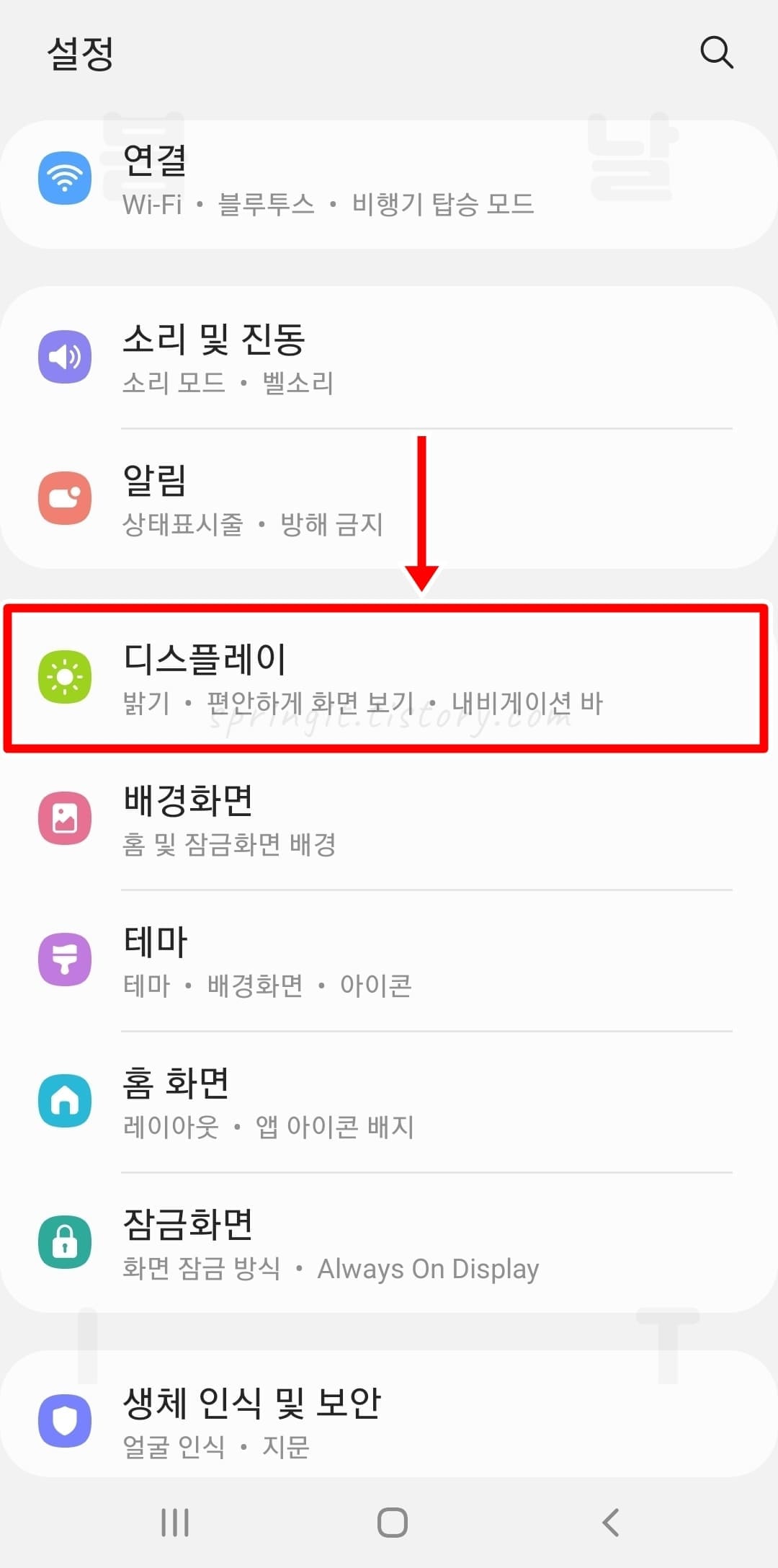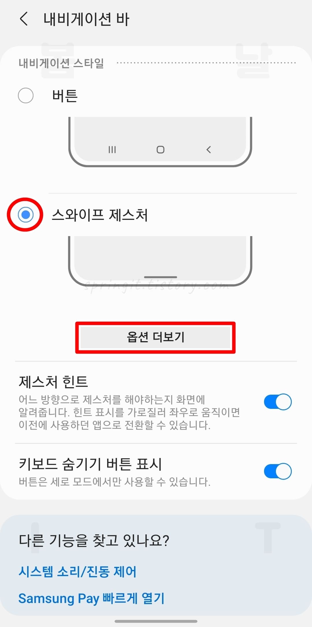 첫번째는 갤럭시 기본 설정에서 버튼 형식으로 계속 보여지는 하단 네비바를 스와이프 방식으로 변경해서 투명하게 숨기는 방법입니다. 가장 쉽고 빠르게 설정할 수 있어서 편리합니다.
