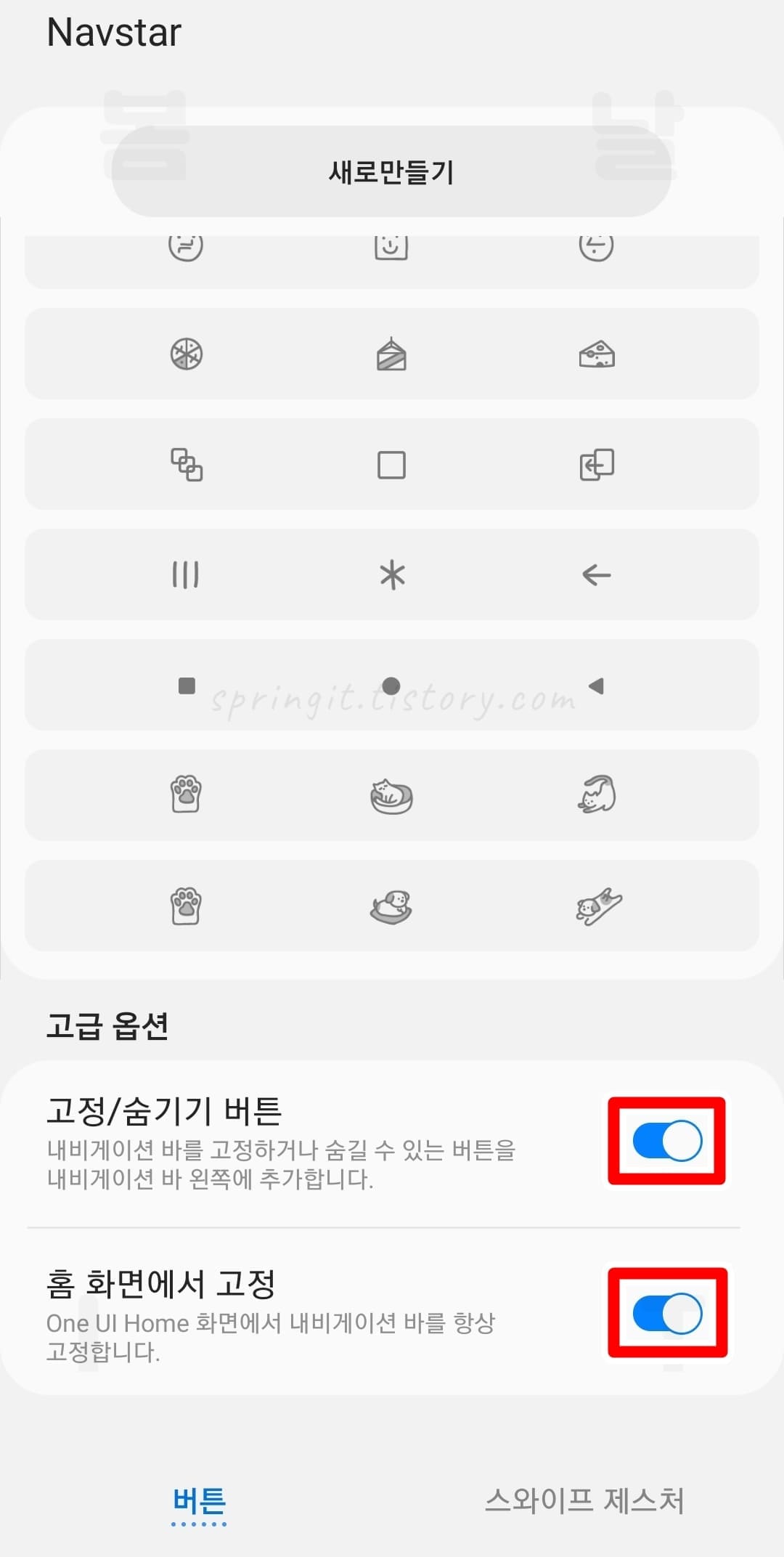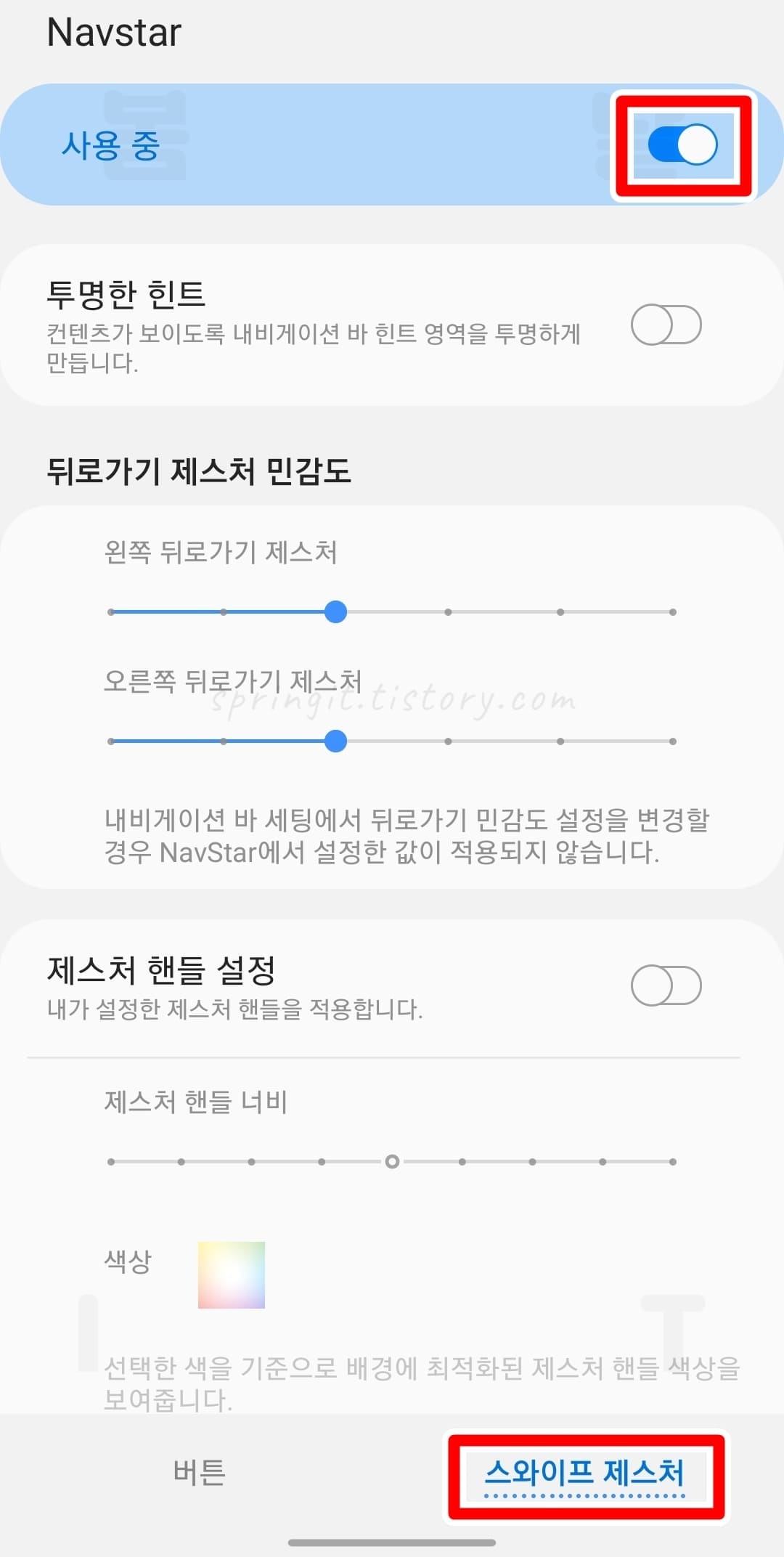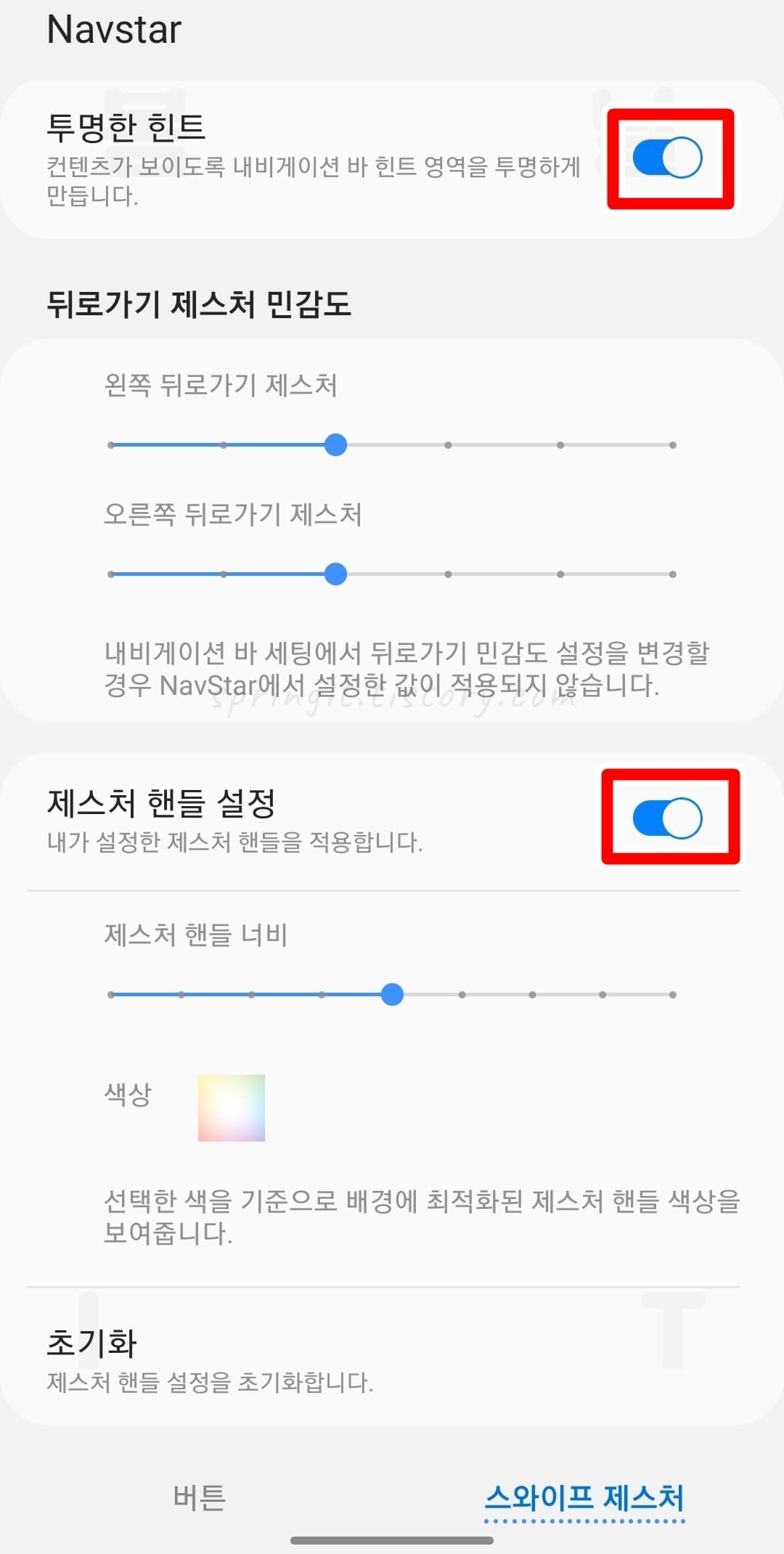 네비바 스와이프 제스처 색상 및 크기 변경하기