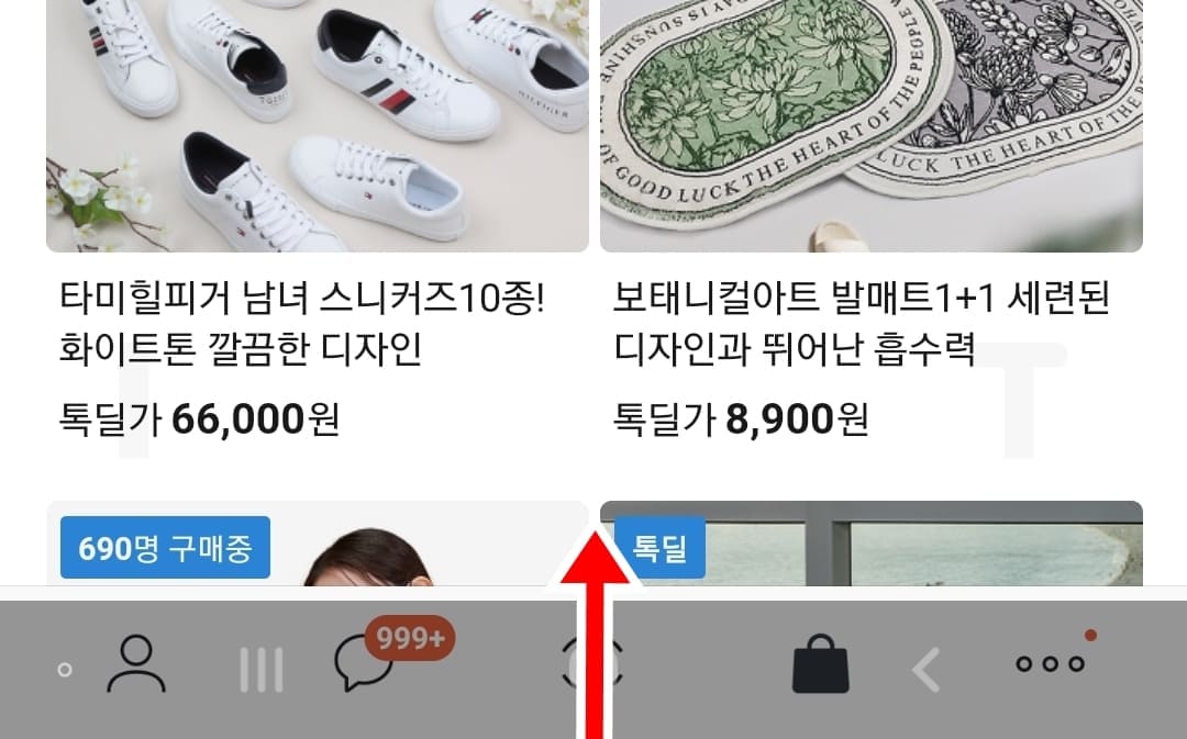 앱상에서 네비게이션바 버튼 기능을 사용하고 싶다면 하단바를 위로 슬라이드해보세요. 그러면 사진처럼 반투명한 네비바가 표시됩니다.