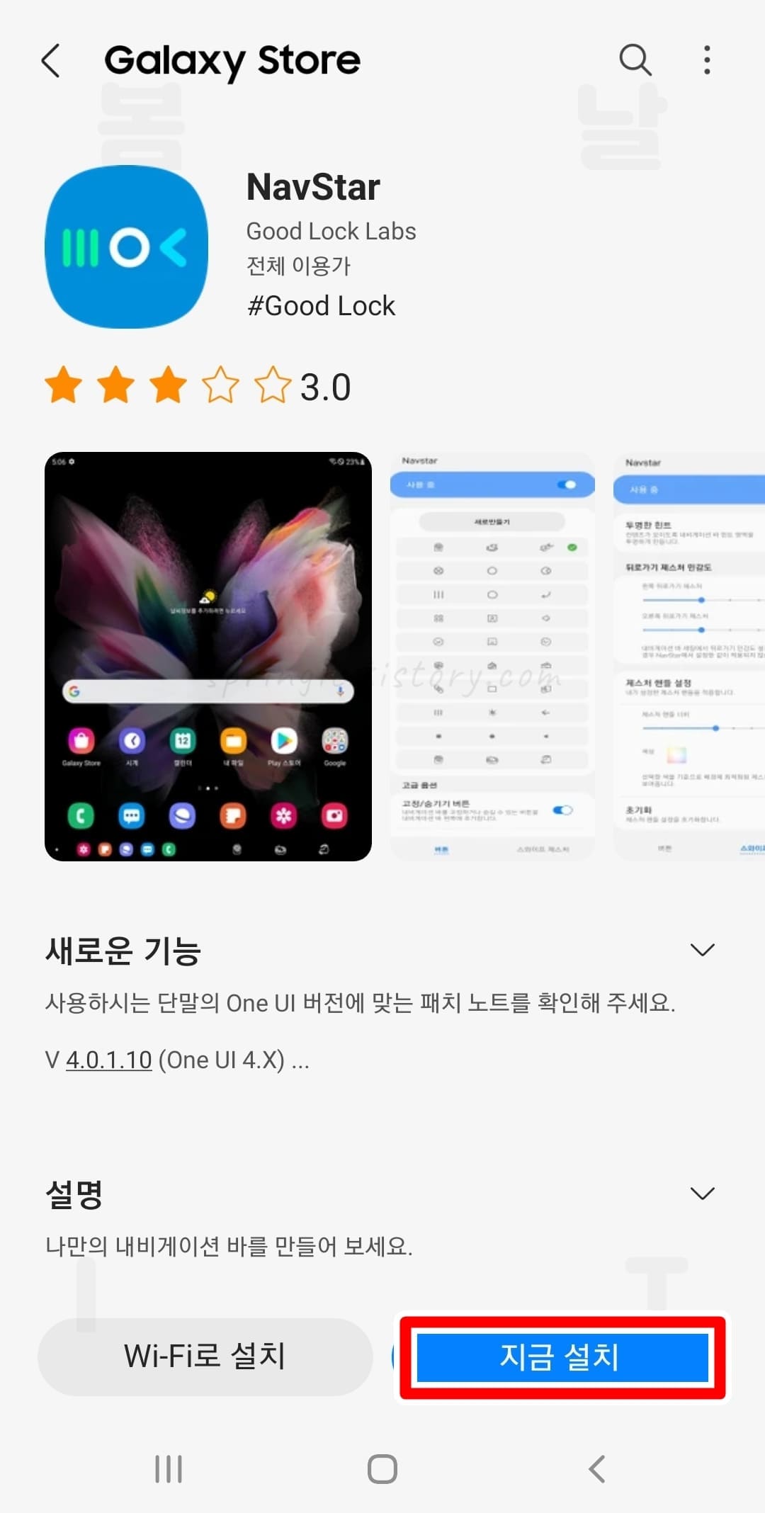 두번째는 갤럭시의 커스텀 어플리케이션인 굿락 앱을 이용해서 갤럭시 네비바를 고정 및 숨기기하는 것입니다. 이 기능을 이용하면 앱 화면에서는 네비바가 투명하게 숨겨지고, 홈 화면/앱스화면에서는 네비바가 다시 표시되서 언제든 편리하게 사용할 수 있습니다.