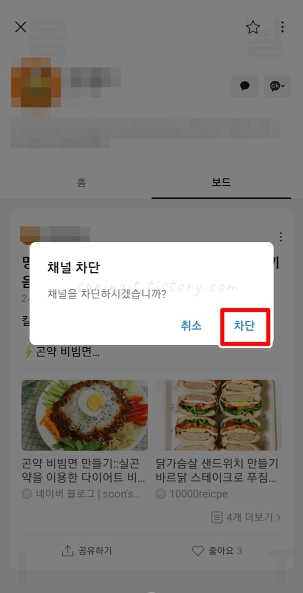 차단이라고 표현되었지만 사실상 구독취소 개념입니다. 그래서 다시 해당 채널의 ch+를 누르면 구독할 수 있습니다. 이제 내가 관심있는 보드만 올리는 채널들만 구독해서 콘텐츠를 즐겨보시길 바랍니다.