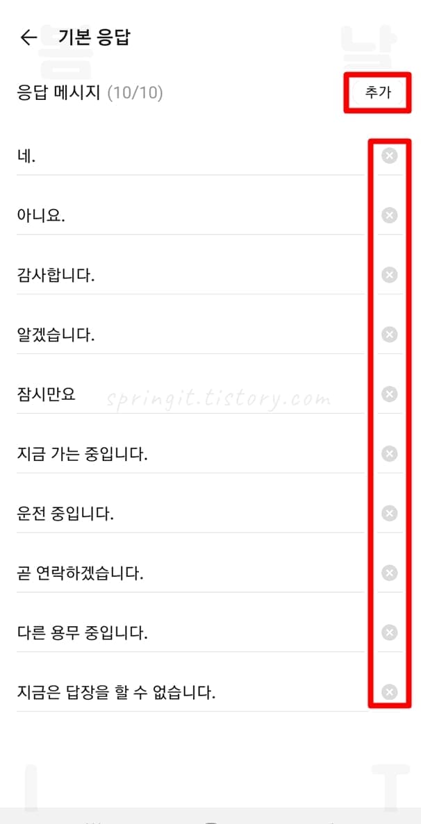 6.응답 메시지를 삭제하거나 추가합니다.