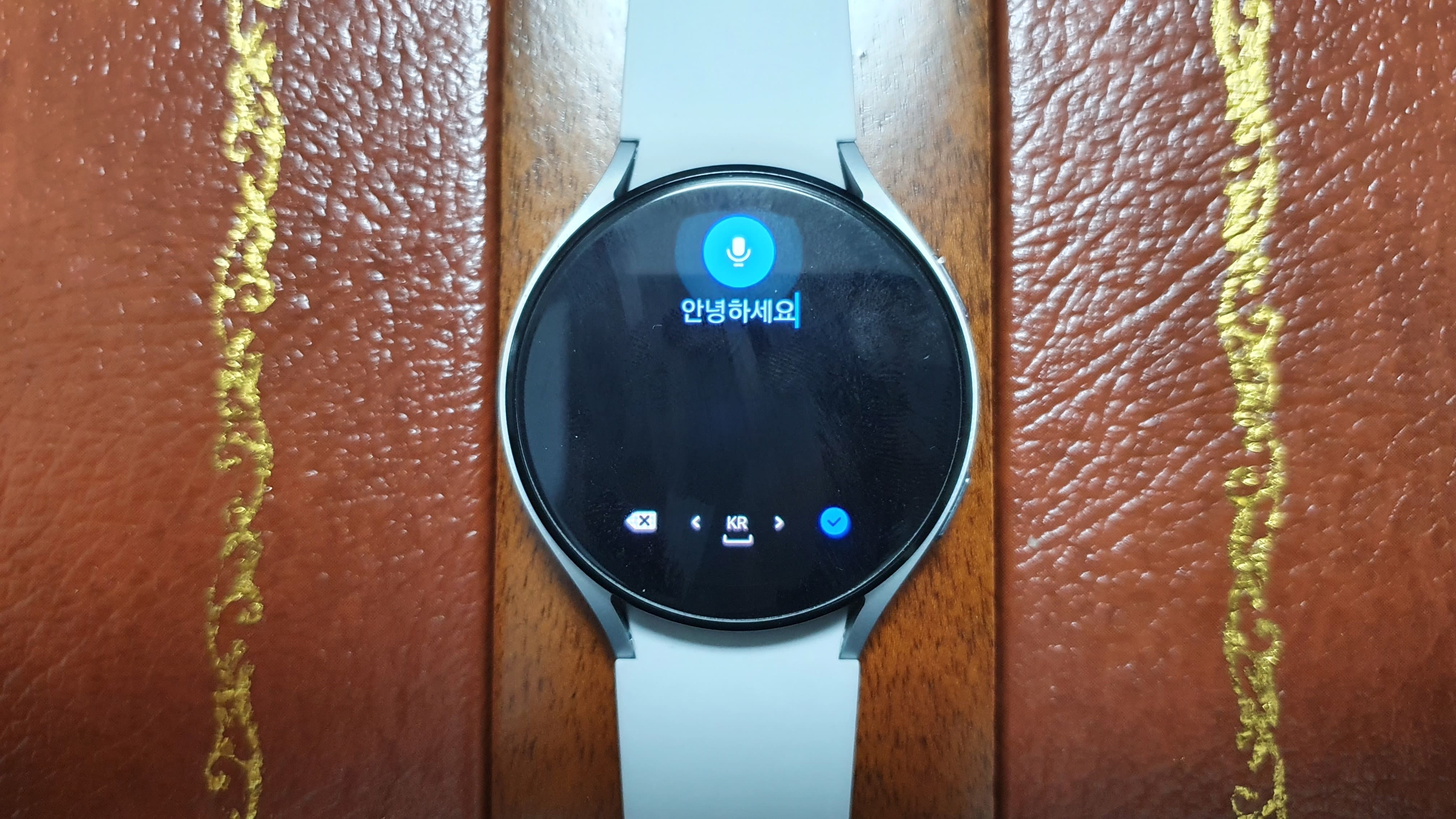 저는 '안녕하세요'리고 말해보았는데요. 인식률도 높아서 제가 갤럭시 워치로 카카오톡을 사용할 때 가장 많이 이용하는 기능입니다. 정확히 인식되었다면 우측 하단의 V버튼을 누르시면 전송됩니다.