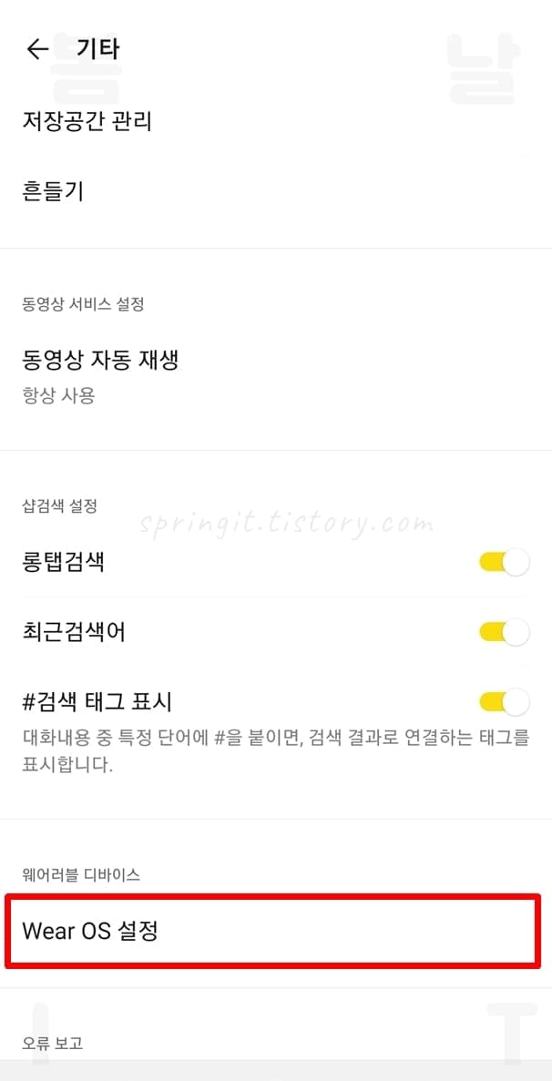 5. Wear OS 카카오톡 사용을 활성화합니다.