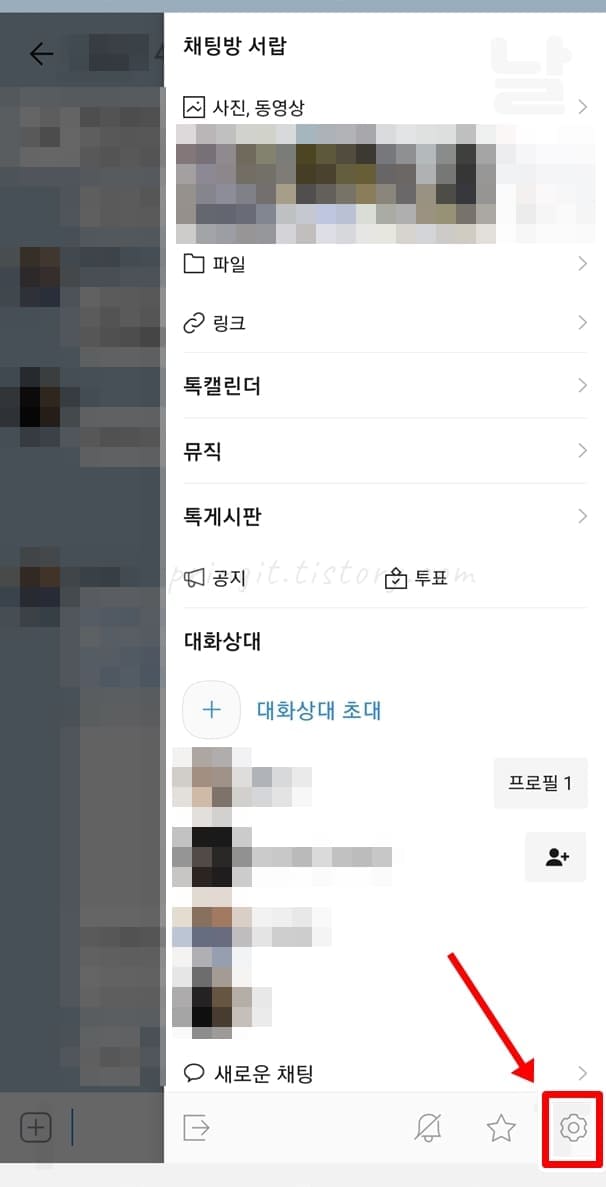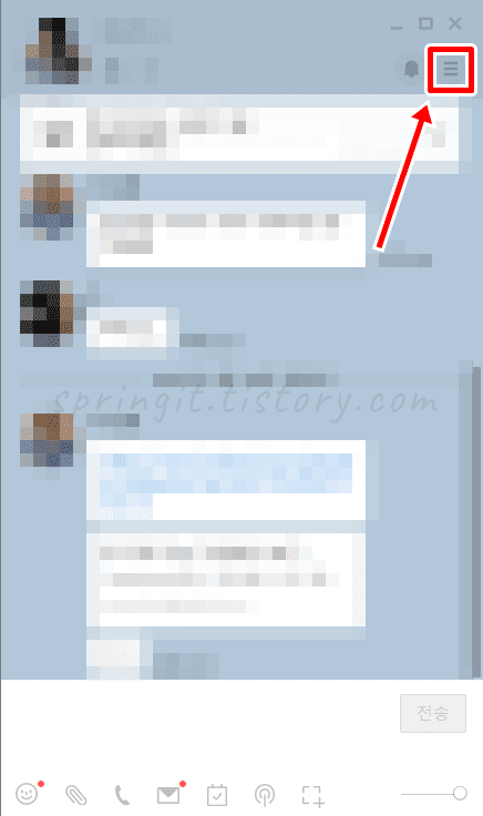 2. 채팅방 서랍 버튼을 클릭합니다.