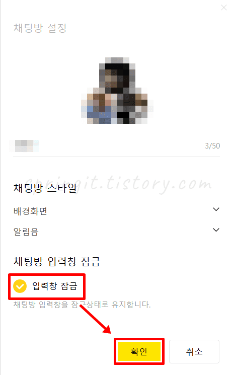 4. 현재 채팅방 입력창 잠금을 활성화합니다.