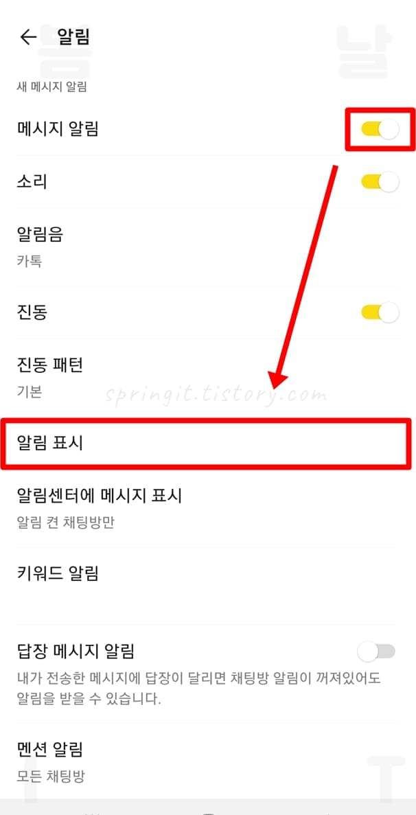 3. 메시지 알림을 활성화합니다.