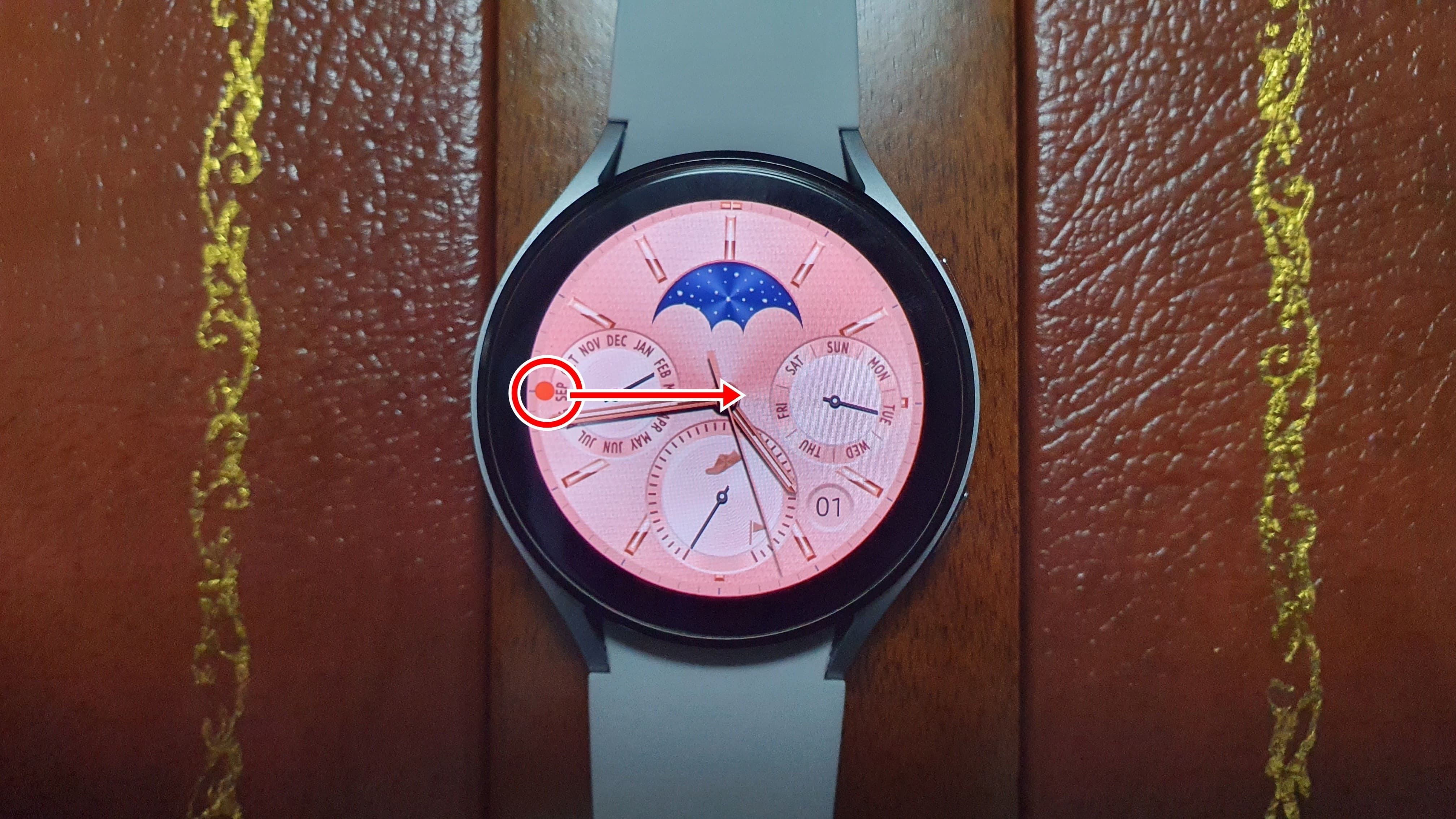 갤럭시 워치에서 알림이 울리면 시계화면 우측에 빨간색 점이 보여집니다. 이것은 아직 내가 확인하지 않은 알림 내용이 있다는 표시인데요. 알림을 보고 싶다면 갤럭시 워치 화면을 좌측에서 우측으로 밀어주시길 바랍니다.