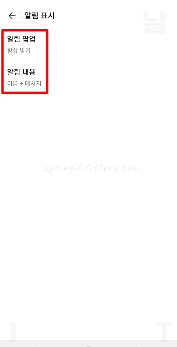5. 알림 팝업을 항상 받기로 변경합니다.