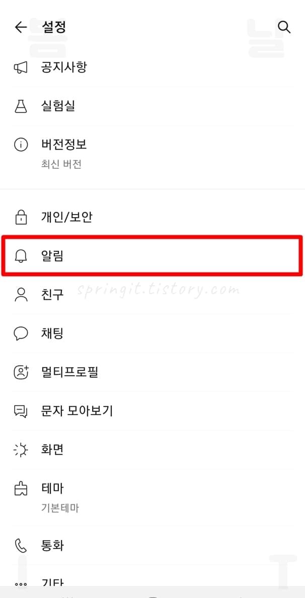 3. 알림을 클릭합니다.