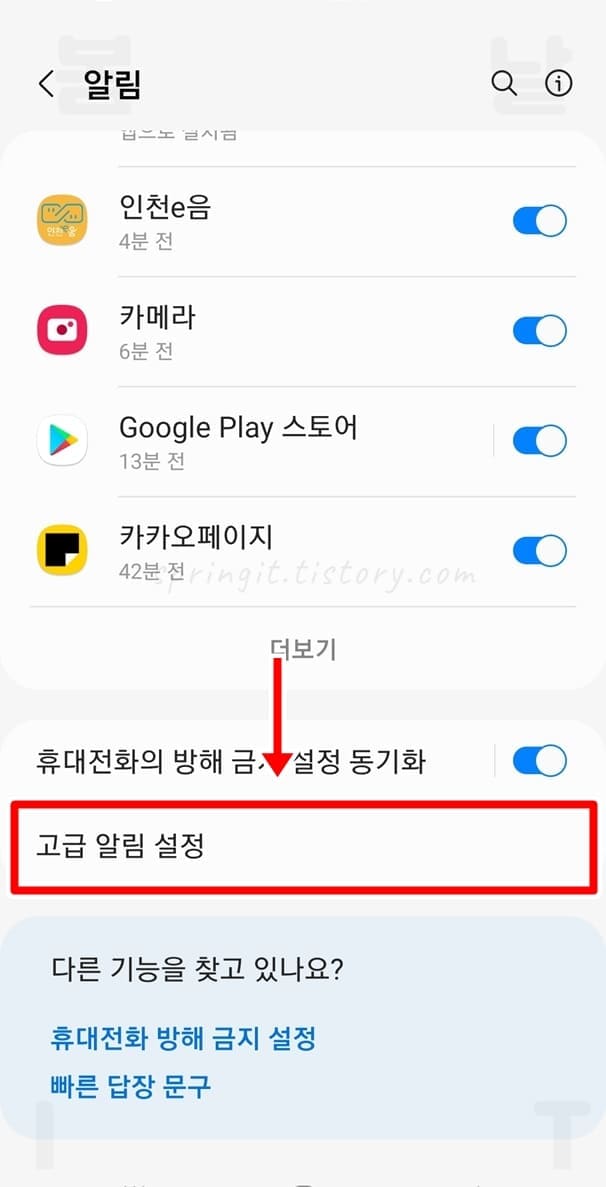 6. 알림 앱 목록에서 더보기를 클릭합니다.