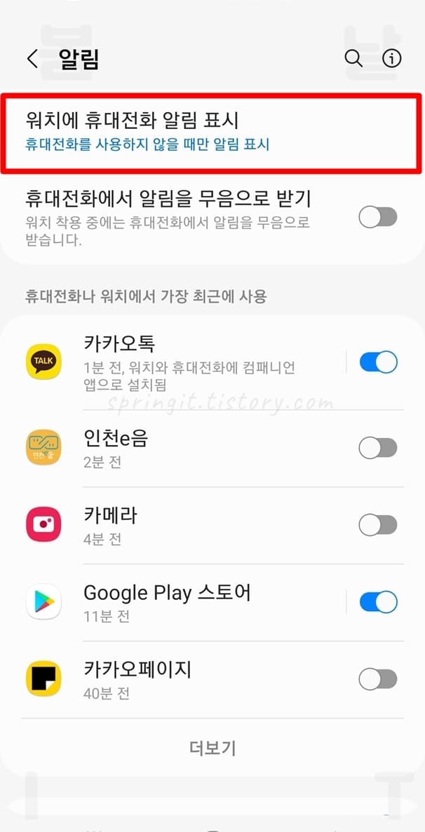 스마트폰 앱 알림 설정 변경으로 워치 알림 받기