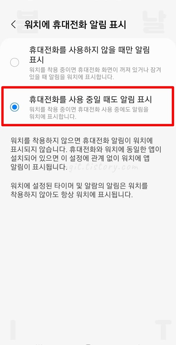 5. 휴대전화를 사용 중일 때도 알림 표시로 설정합니다.