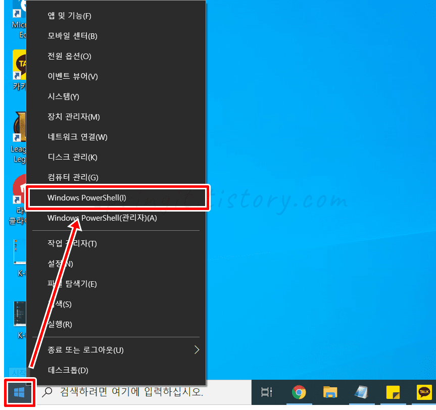 1. 윈도우 시작버튼에 마우스 우클릭합니다.