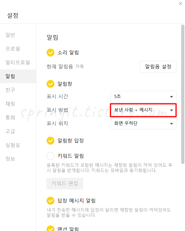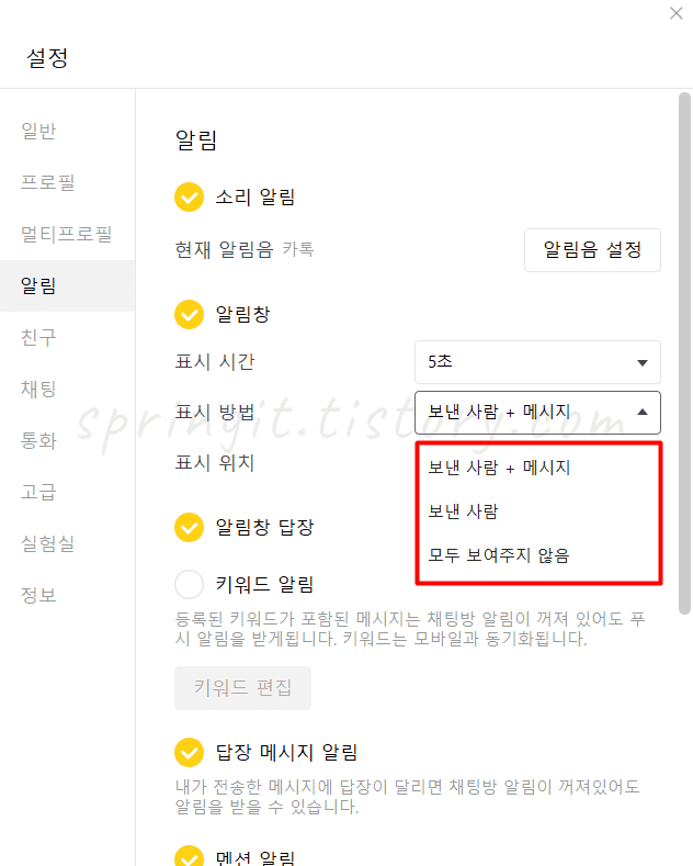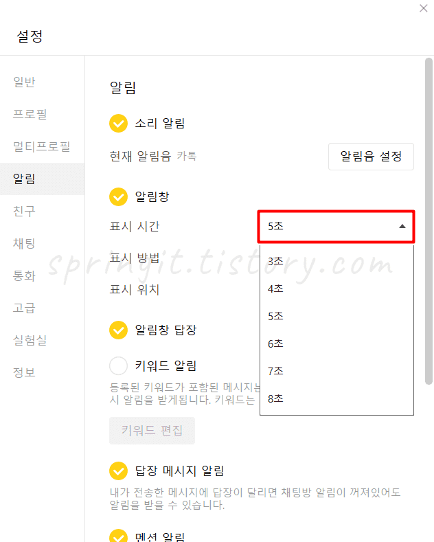 PC 카카오톡 알림창 표시 시간 및 위치 바꾸기