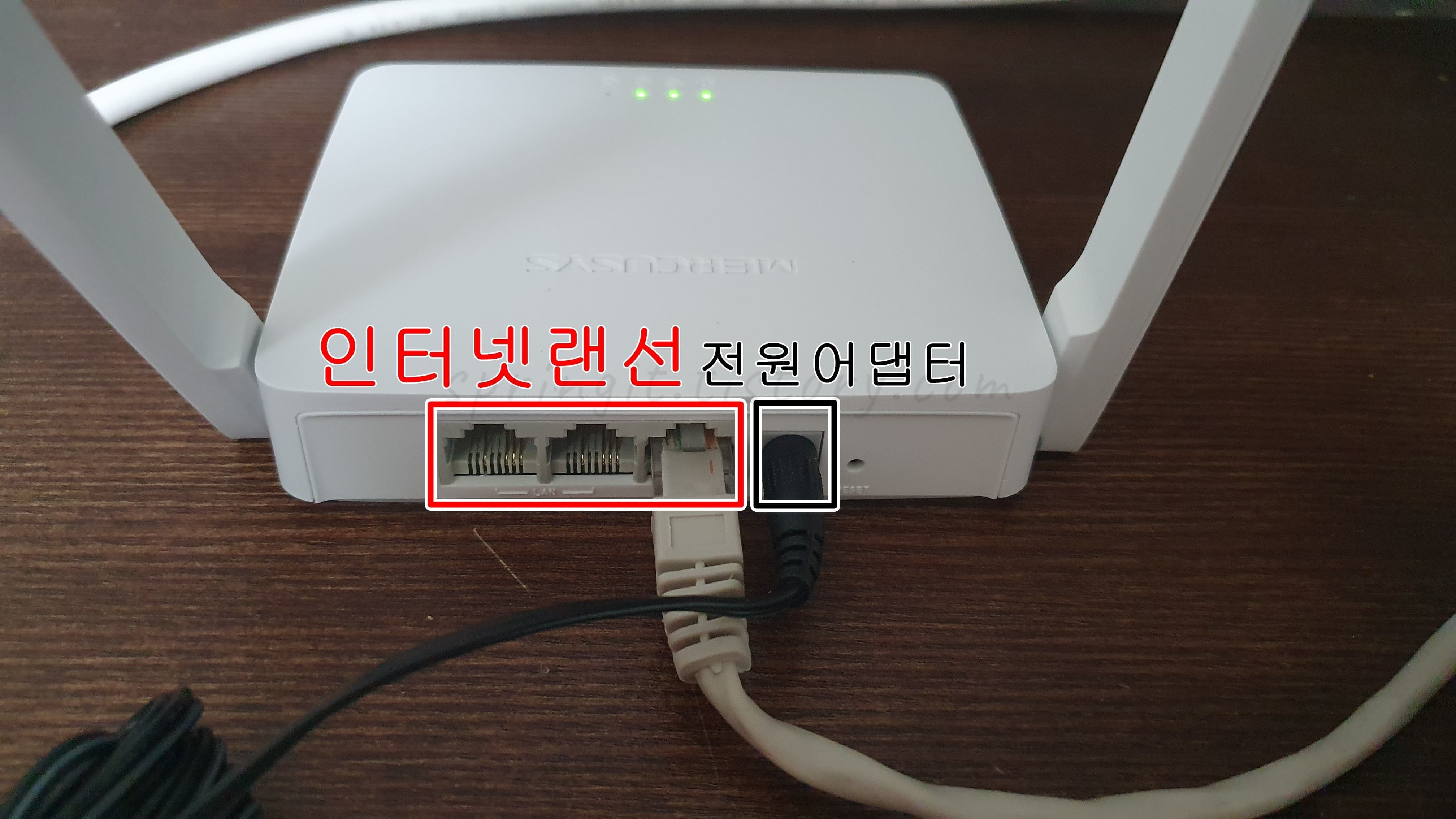 MERCUSYS 공유기 설치는 아주 간단합니다. 뒷면을 보시면 인터넷랜선을 꽂을 수 있는 구멍 3개와 전원 어댑터가 있습니다. 집 벽과 연결된 인터넷랜선을 구멍 3개중 아무곳이나 꽂아주시면 되고 나머지 2개 구멍의 랜선과 데스크탑 컴퓨터를 연결해주면 인터넷 사용이 가능해집니다. 전원어댑터는 동봉된 전원코드를 꽂아주시면 되겠습니다.