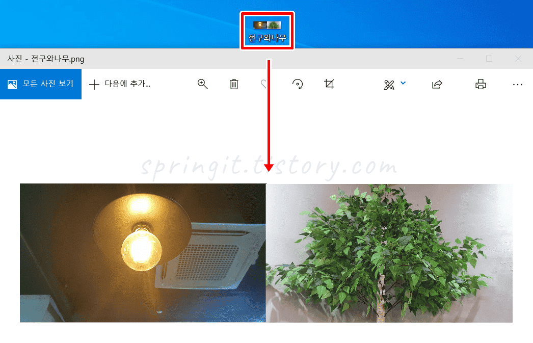 또한 위에서는 사진간 영역을 침범하지 않게 합쳐졌지만 내가 사진의 일부분만 영역지정한 후 다른 사진위로 붙여넣는다면 그림판으로 곂치기도 응용해서 가능합니다. 이렇듯 윈도우 기본 프로그램인 그림판으로도 고품질의 사진 편집이 가능하니 편리하게 사용해보세요.