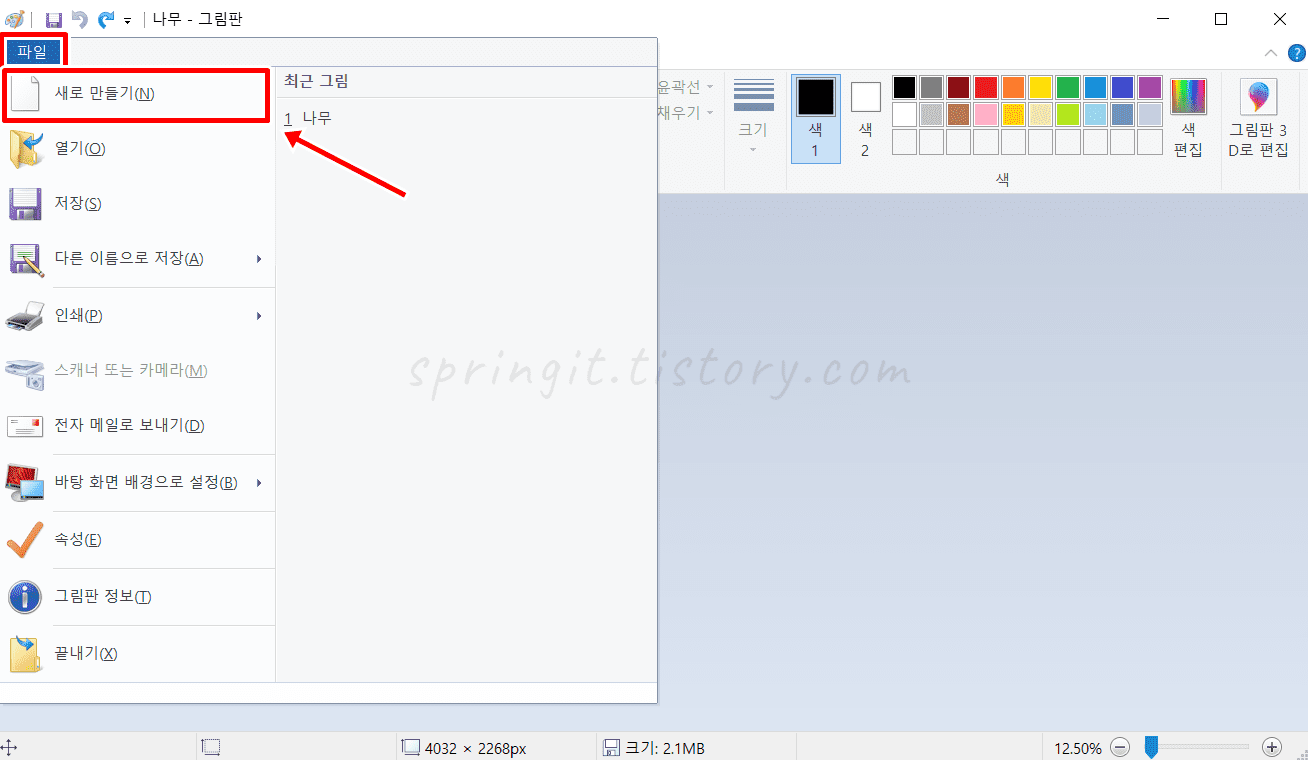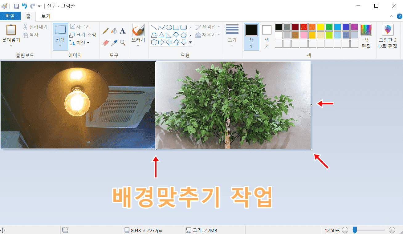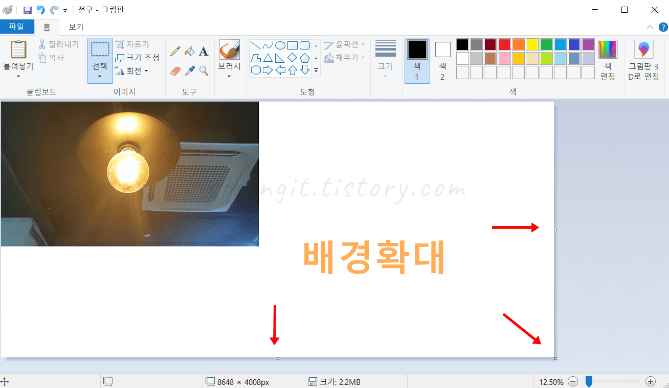 12. 그림판 배경여백을 끌어서 확대합니다.