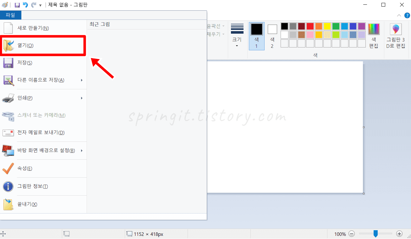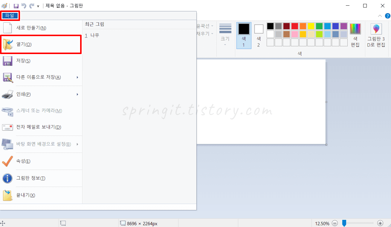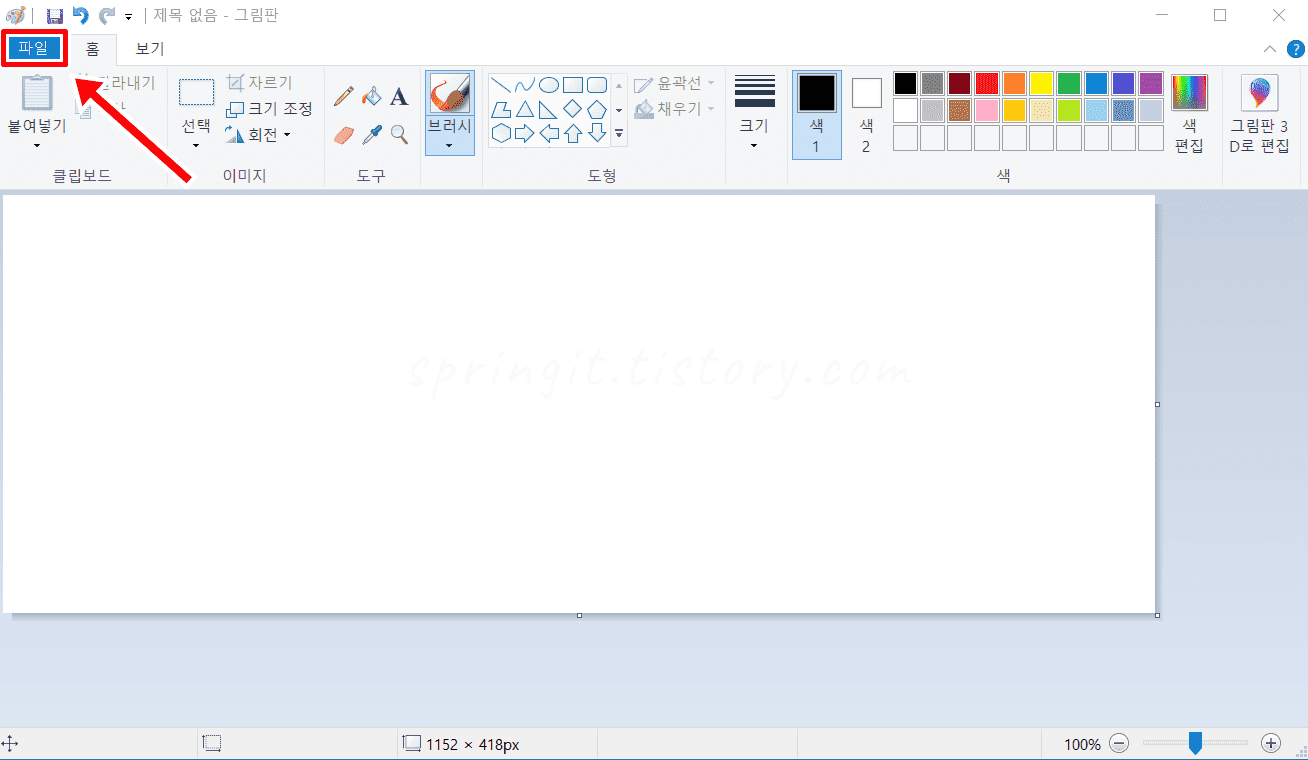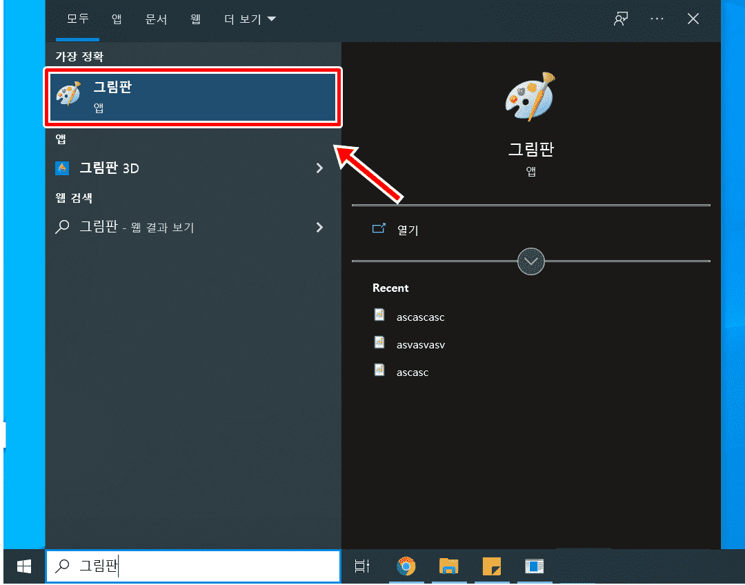 1. 컴퓨터에서 그림판 프로그램을 실행합니다.