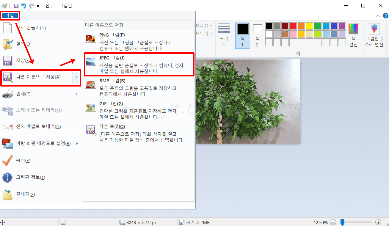 원하시는 다른 사진 유형(PNG, BMP, GIF)이 있다면 선택하셔서 저장하시면 되겠습니다.