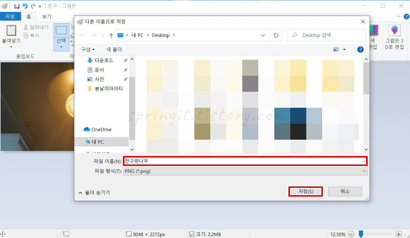 18. 저장 위치 및 파일 이름을 설정하고 저장을 누릅니다.