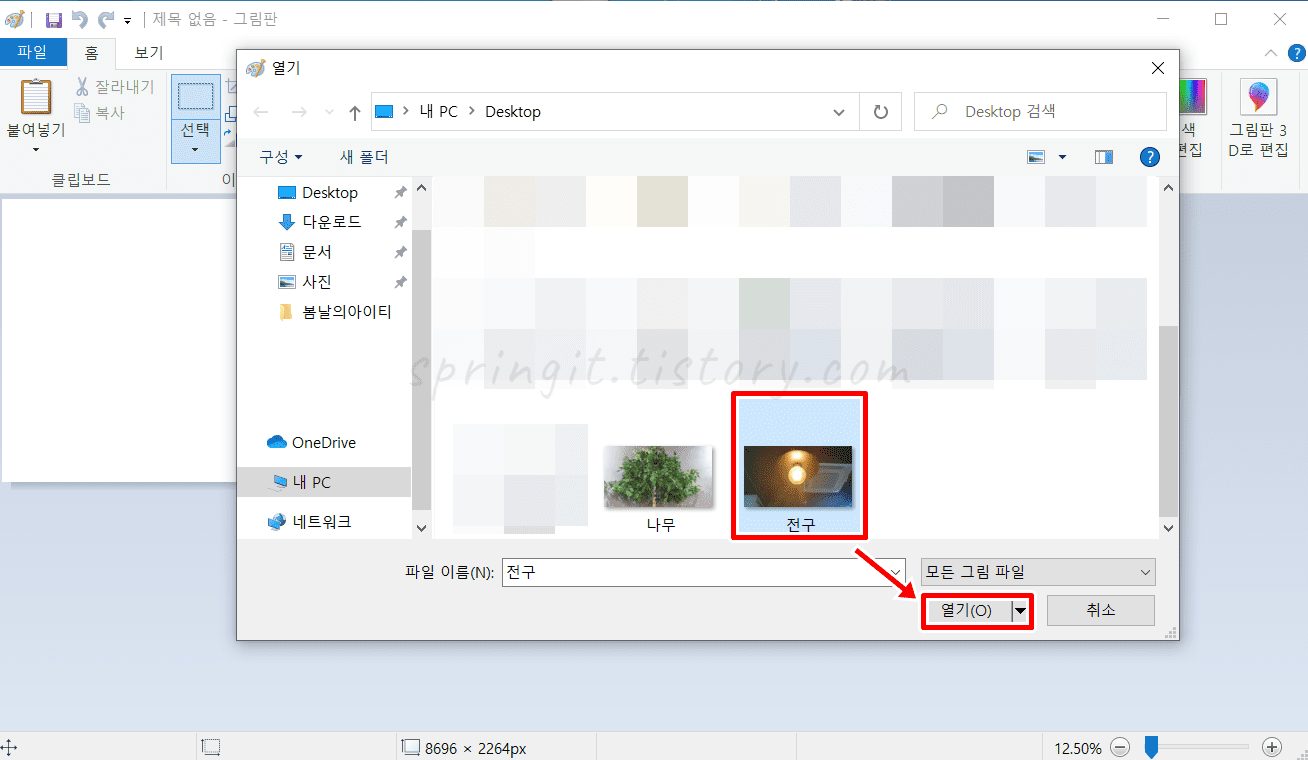 1. 컴퓨터에서 그림판 프로그램을 실행합니다.
