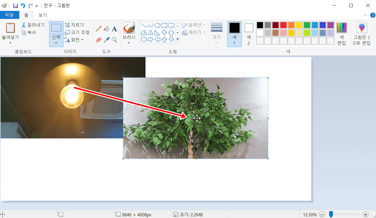 또한 위에서는 사진간 영역을 침범하지 않게 합쳐졌지만 내가 사진의 일부분만 영역지정한 후 다른 사진위로 붙여넣는다면 그림판으로 곂치기도 응용해서 가능합니다. 이렇듯 윈도우 기본 프로그램인 그림판으로도 고품질의 사진 편집이 가능하니 편리하게 사용해보세요.