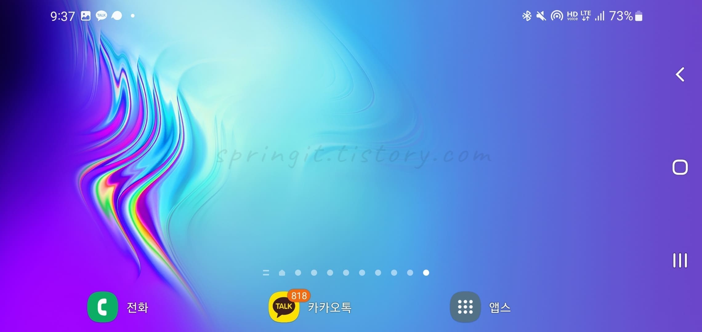 △ 이제 갤럭시 모든 화면이 회전되도록 허용되었습니다. 위의 모습은 홈 화면의 모습으로 자동회전에 따라서 화면이 바뀌게 됩니다. 위에서 알아본 갤럭시 화면 회전 고정으로 계속 가로모드로 사용도 가능하겠죠.