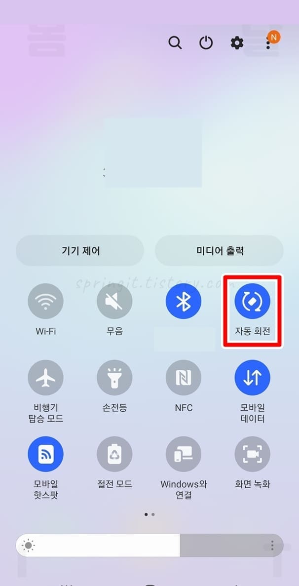 1. 상단바를 아래로 내려서 세로 버튼을 누릅니다.