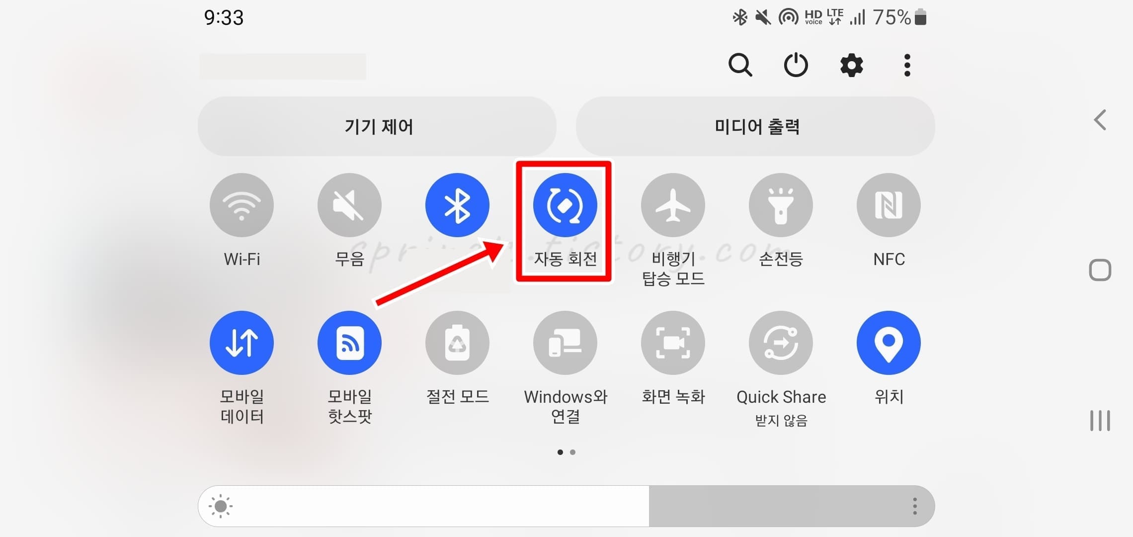 2. 자동 회전이 켜진 상태에서 자동 회전 텍스트를 클릭합니다.