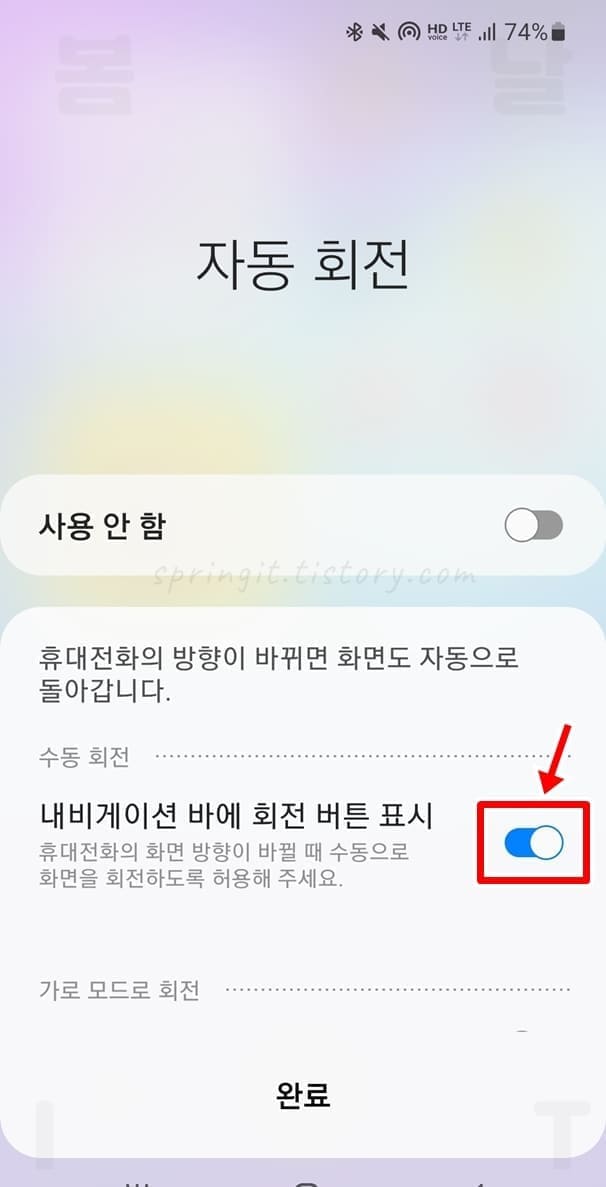 3. 자동 회전으로 변경된 것을 확인합니다.