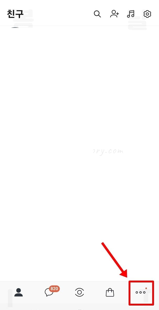 1. 카카오톡 앱에서 더보기 메뉴를 클릭합니다.